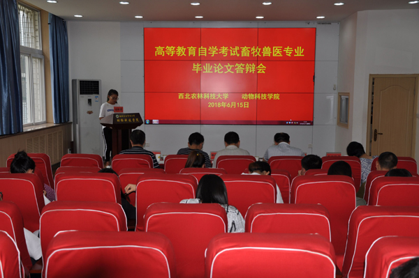 6月15日,学院在104会议室、107会议室举行2018年春季高等教育自学考试畜牧兽医本科专业毕业论文答辩会,61名学生参加了毕业论文答辩。毕业论文答辩分两组进行,分别由副院长孙超教授、于三科教授担任答辩主席、孙世铎教授、胡建宏教授、林青教授、史怀平教授、武浩副教授、孙小琴副教授、张淑霞副教授、王妍副教授担任答辩委员。