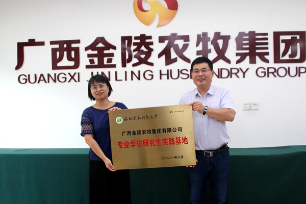为进一步加强金陵研究院人才培养,深化校企合作,我院在广西金陵农牧集团先后建立本科生实践教学基地和专业学位研究生实践基地,9月3日,成人网址 党委书记曹军会,研究生院研究生培养处处长王军,研究院专家动科学院孙世铎教授、动医学院肖书奇教授、食品学院王新教授、食品学院冯宪超教授等一行赴广西金陵农牧集团考察,为共建实践基地授牌。