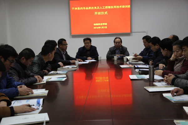 1月7日上午,学院在104会议室举行“子洲县肉羊品质改良及人工授精实用技术培训班”开班仪式。教务处长陈玉林教授、学院党委书记赵延安、成教办工作人员和来自榆林市子洲县18个乡镇的基层畜牧兽医站管理人员、技术人员、羊场负责人共20名学员出席开班仪式。开班仪式由王力副院长主持。
