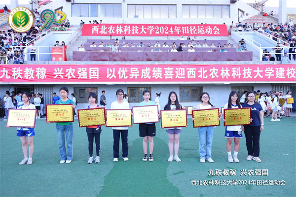 荣获学生男女团体总分第七名(图左三为学生会体育部助理夏令同学代表学院领奖)