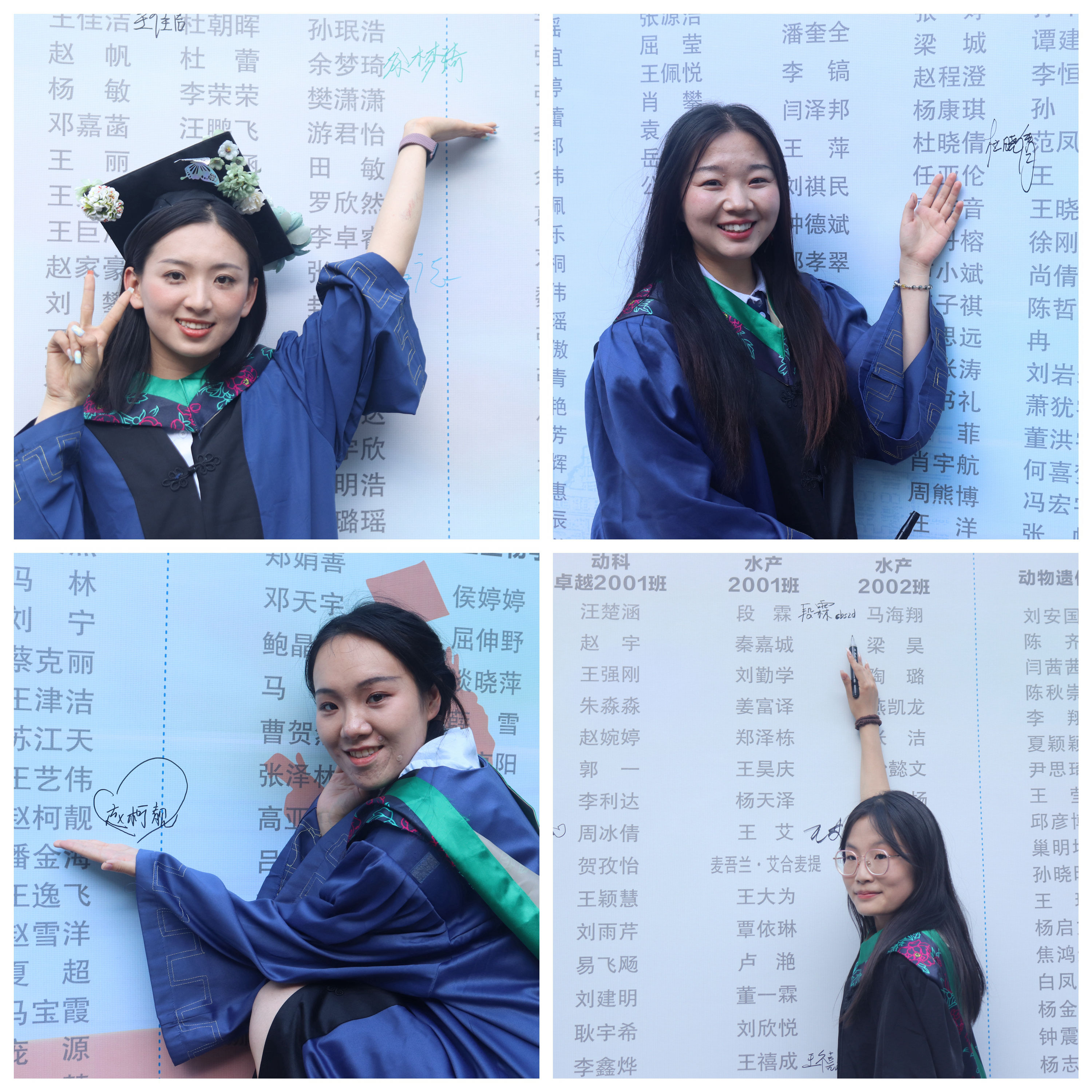 为做好毕业生教育,为毕业生留下“独家记忆”,6月11日,学院组织开展了“快门按下 定格青春”毕业生拍照打卡活动。前期,学院收集低年级学生祝福语并制作了地贴,自西向东由“畜德自牧 富饶天下”到“我们毕业啦”,寓意希望毕业生以学院文化为根基,坚定走好毕业这一小步,并以毕业为起点奔赴广阔山海。