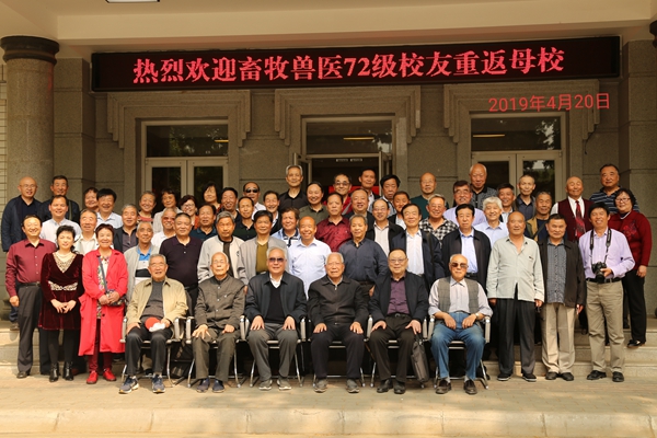 草长莺飞,姹紫嫣红,最美人间四月天,成人网址 、动物医学院迎来一大盛事——畜牧兽医72级五十余位校友毕业44年后相聚西农。原任课教师王强华、崔中林、贺普霄、曹光荣、马章全、雷天富,成人网址 党委书记曹军会、动物医学院副院长杨增岐,畜牧兽医72级校友60余人相聚一堂,共叙难忘师生情。