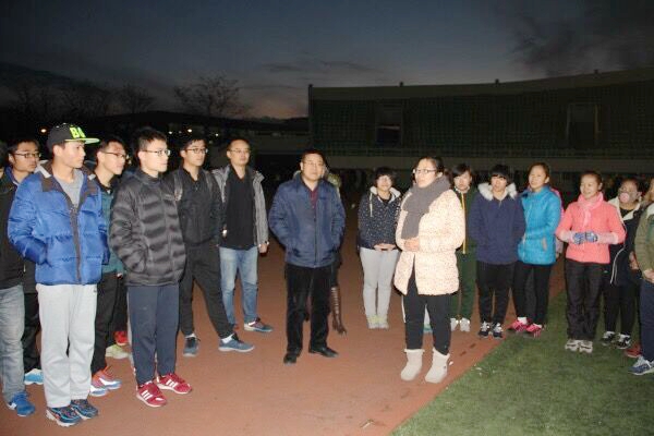 看到队员们的辛苦训练后,休息期间,党委书记赵延安表示冬训队员们在训练期间付出的努力都会得到回报,提出坚持就是比最后一步再前进一点,付出总是与回报成正比的观点,同时,他强调了冬训队员训练安排的强度与相关安全事宜的重要性,希望同学们合理安排训练强度、规范细化训练方法,有效提高训练水平。党委副书记王晓娟则表示了学院领导对冬季训练的高度重视,对于在训练中出现的身体不适问题要及时向老师反映,注意营养补充,保证足够的睡眠时间,她希望在即将结束的冬训生活中,队员们珍惜时间,积极备战,迎接即将到来的校越野赛,跑出辉煌,为学院争光,也为辛苦的训练画上一个圆满的句号。
