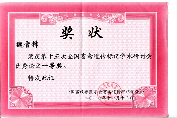 我院雷初朝教授作了题为“中国及周边水牛mtDNA基因组与Y-STR起源进化研究”的大会报告;陈宏教授指导的2013级博士研究生魏雪锋、2014级博生研究生刘梅和2014级博士研究生李辉分别作了题为“miR-378抑制成肌细胞增值、促进细胞凋亡”、“黄牛MAPK10基因的拷贝数变异的鉴定及其遗传效应研究”“The muscle developmental transcriptome profiling reveals a candidate gene that regulates cell differentiation, proliferation and apoptosis”的分会报告;蓝贤勇教授指导的2016级硕士生杨青作了题为“利用数学期望(ME)策略检测黄牛PRNP基因3’UTR区域14-bp插入/缺失(Indel)的低频突变研究”的分会报告。