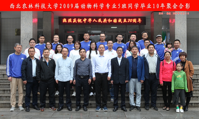 正逢建国70周年大庆。10月3日下午, 2009届动物科学专业5班校友毕业10年聚会师生座谈会在学院104会议室举行。学院党委书记曹军会,副院长孙超,党委副书记王力,教师代表及2009届动物科学专业5班返校聚会的校友出席了座谈会。
