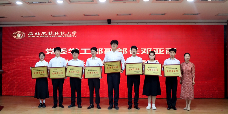 党委学工部副部长邓亚丽为先进学生会颁奖(图右四为我院学生会执行主席帖子航上台领奖)