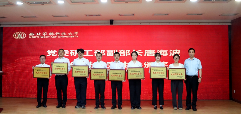 党委研工部副部长唐海波为先进研究生会颁奖(图左三为我院研究生会主席团成员王一凡上台领奖)