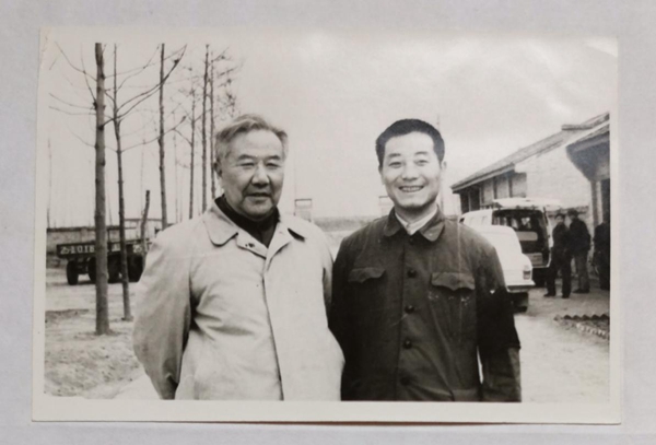 1986年,刘荫武教授(左)在千阳县种羊场考察工作时与本文作者边江合影 邓志发摄