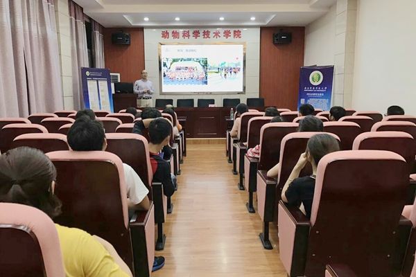 在湖南农业大学动物科学技术学院,张恩平教授面对动物科学、水产养殖学等专业本科生做了题为《多彩校园生活,成就科研人生》的招生宣讲,主要从学校学院简况、学科平台及人才培养、校园文化和奖助体系4个方面介绍了学院的研究生培养情况,并特别介绍了学院专业特色和优势、2017年各专业招生规模、录取以及夏令营活动。与会学生就我院的推荐免试、导师的招生指标及复试比例等问题进行了详细的咨询,重点询问了我院优秀大学生暑期夏令营活动的选拔录取程序。